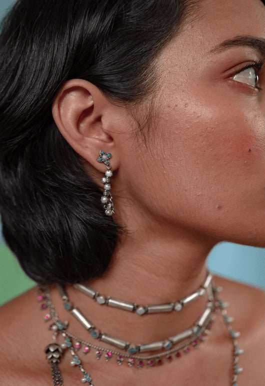 Minimalist yet fancy in that quiet way pearl details making them work for everyday grocery trips or festive occasions whichever comes first , they flash effortlessly stackable minimalist studs sit next to glittery kundan-embellished showstoppers without clashing everything gets handmade in sterling silver.