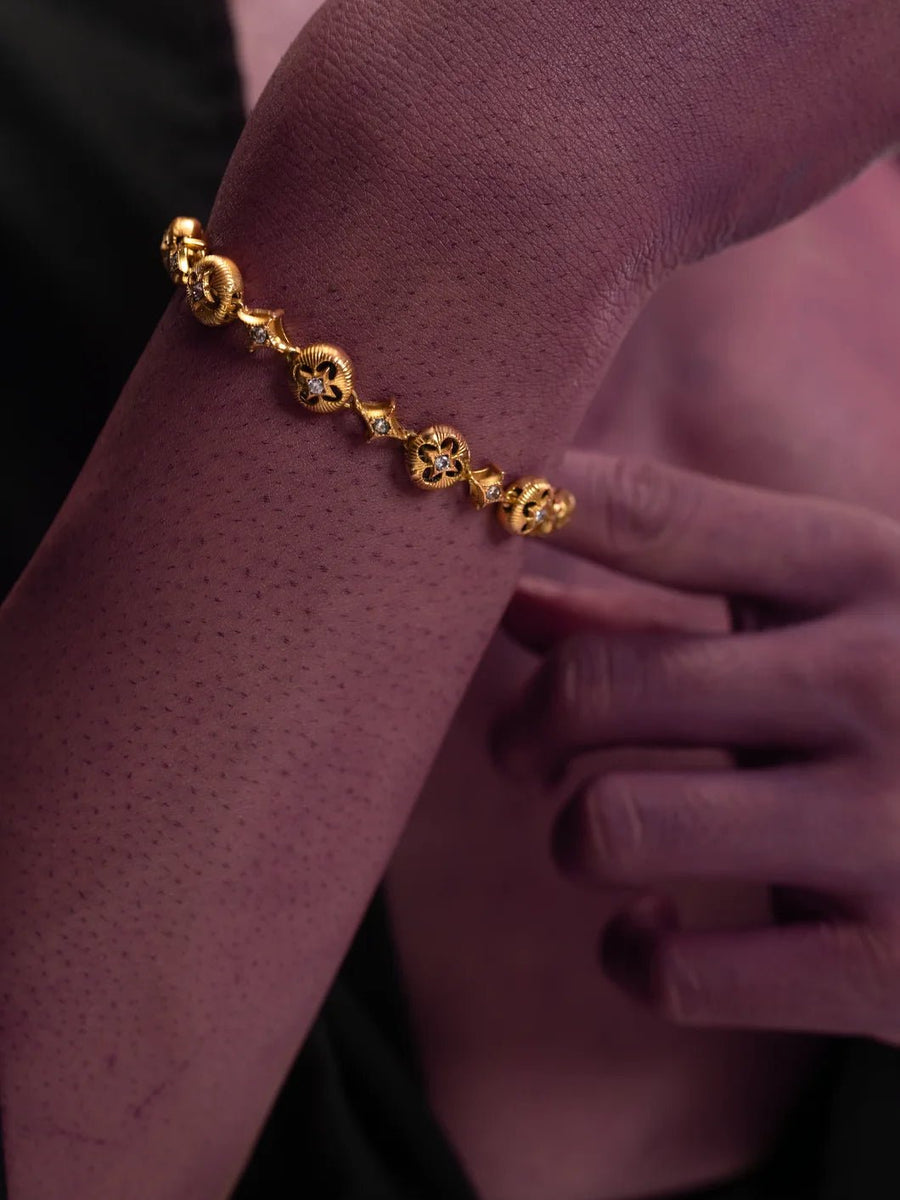 A reimagination of traditional bangle artistry, this piece pairs cultural symbolism with modern craftsmanship, making it an eternal classic.