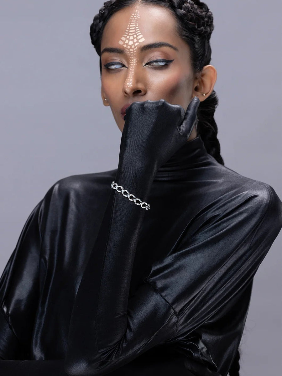 Wrist wear is not just about style it’s about energy, tradition, and individuality. At Bhavya Ramesh, our collection of silver bracelets, bangles, kadas, and cuffs allows you to wear your story every day. Be it the strength of the Badusha Bangle, the mystique of the Oblivion Bracelet, or the edge of the Insidious Bracelet, each piece is designed to resonate with the wearer. Elevate your wrist, and with it, your identity.